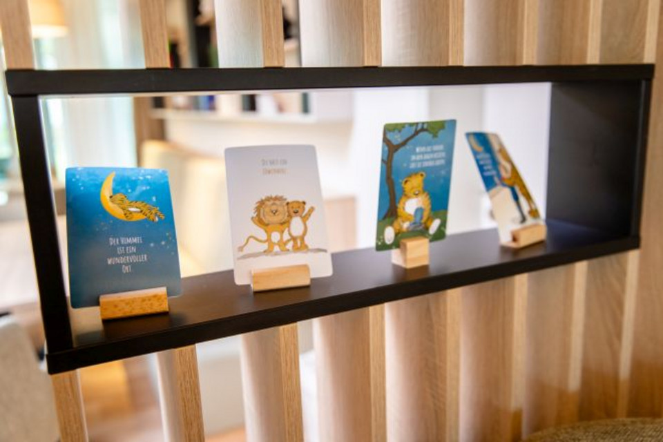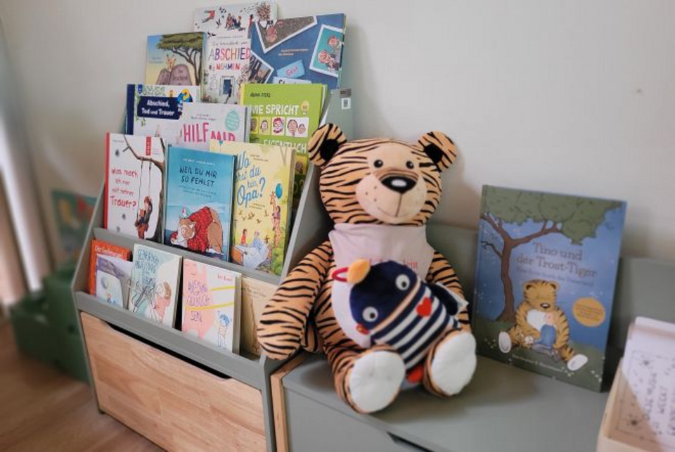 Wir sind ein offenes Haus. Hier dürfen Kinder spielen, lesen, malen – oder einfach still die Umgebung erkunden, während die Erwachsenen Momente der Ruhe oder Gespräche miteinander teilen. Die Bücher aus der Kinderecke können zudem als Ratgeber für Erwachsene dienen, um mit Kindern sensibel über Themen wie Tod und Trauer ins Gespräch zu kommen.