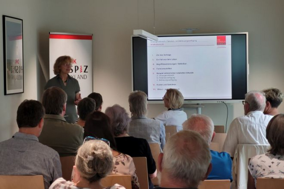 Ziel der Veranstaltung war es, den Teilnehmenden Grundlagen zu vermitteln, um selbst eine fundierte Entscheidung treffen zu können: Brauche ich eine Vorsorgevollmacht, eine Patientenverfügung oder eine Betreuungsverfügung? Welche Bedeutung haben diese Dokumente im Alltag, und was geschieht, wenn keine Vorsorge getroffen ist?